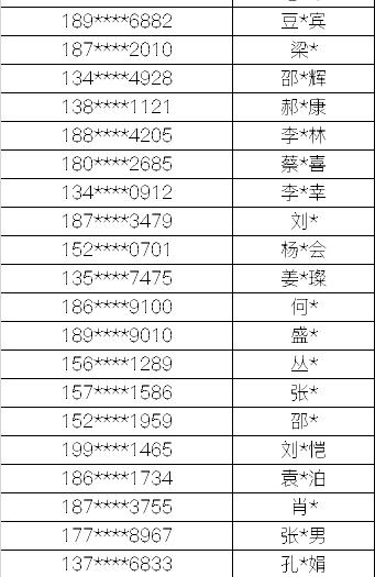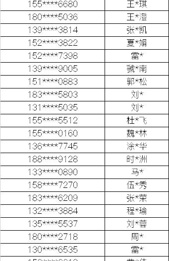 名单如下